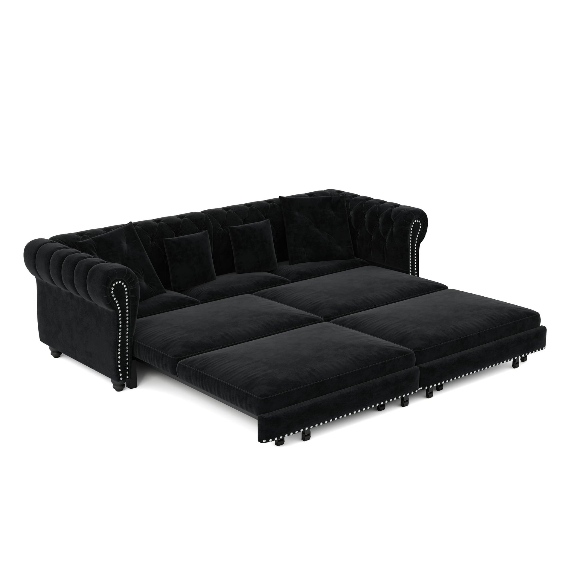 3 In 1 Pull Out Sofa Bed, Convertible Sleeper Sofa Bed, 3 Seater Sofa With Movable Ottoman - Black