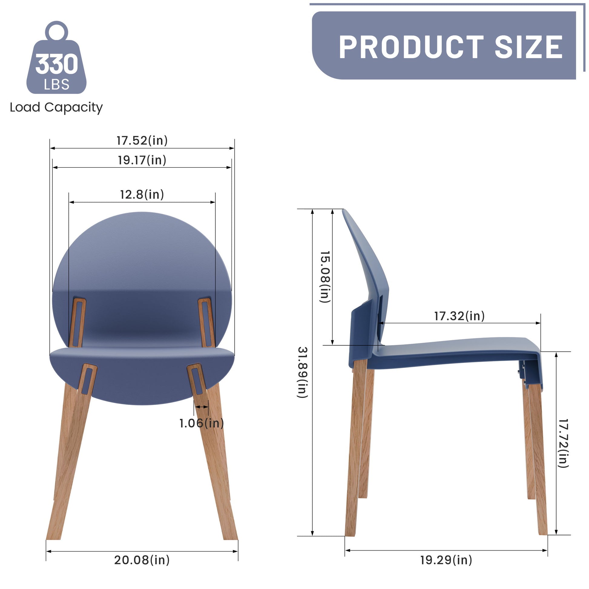 - Note: Since the oak legs cannot come into contact with water, outdoor use is not recommended; the chairs are stackable.