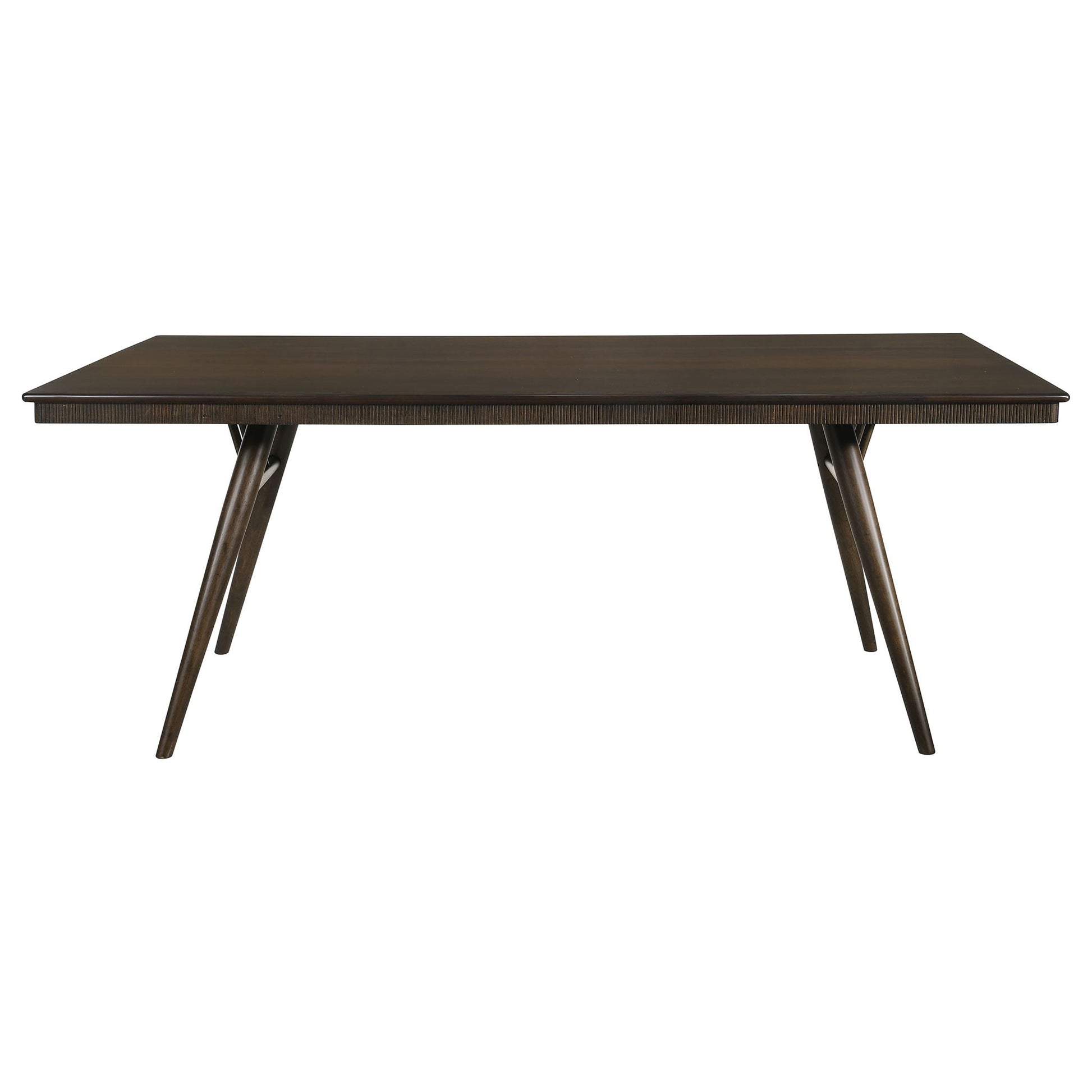 - Mid-century modern design with bold flared legs and fluted apron adds vintage character and visual interest